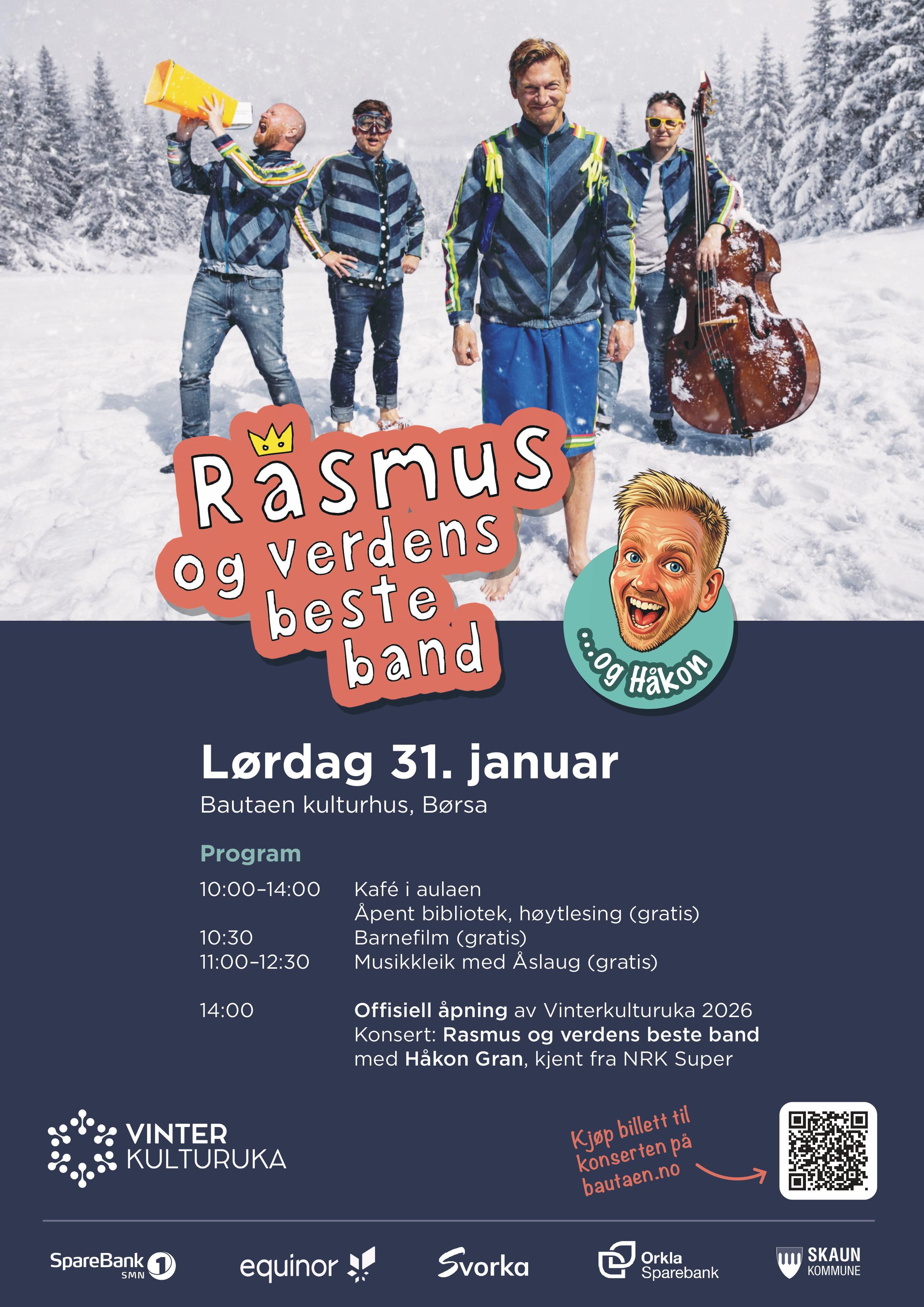 Konsert med Rasmus og verdens beste band og Håkon Gran: kl 14.00 i Øysteinsalen (OBS, her må du kjøpe billett)