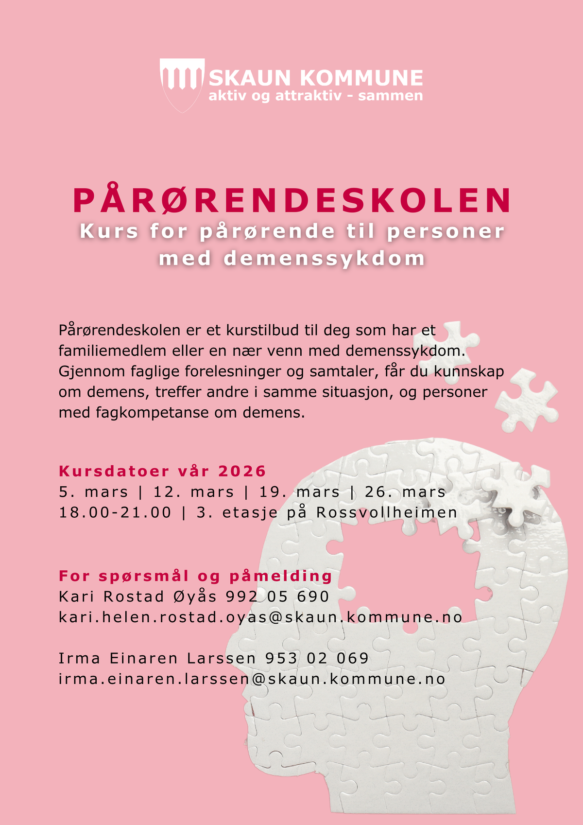 Kurs for pårørende til personer med demenssykdom