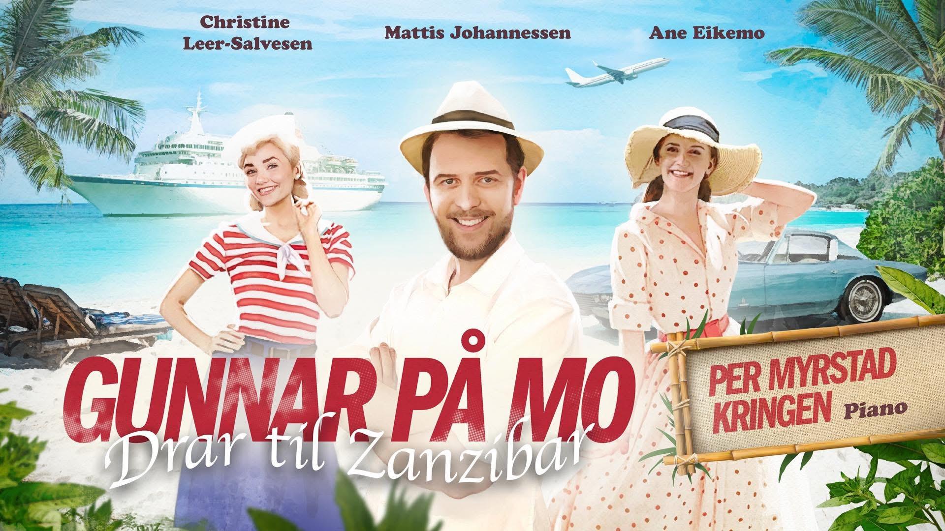 Billettsalg«Gunnar på Mo drar til Zanzibar» er oppfølgeren til den populære forestillingen «Gunnar på Mo». Denne nye forestillingen tar for seg kjente og kjære revysanger fra 30- til 70-tallet. Publikum blir kjent med ungkaren og vandringsmannen Gunnar, inspirert av Prøysens Tango for To. Han er ikke fremmed for en flørt, men takker for seg når han hører refrenget om ringer og giftemål hjemme i fedrelandet. Klarer han virkelig å unnslippe dameproblemene ved å flykte til Zanzibars hvite strender?